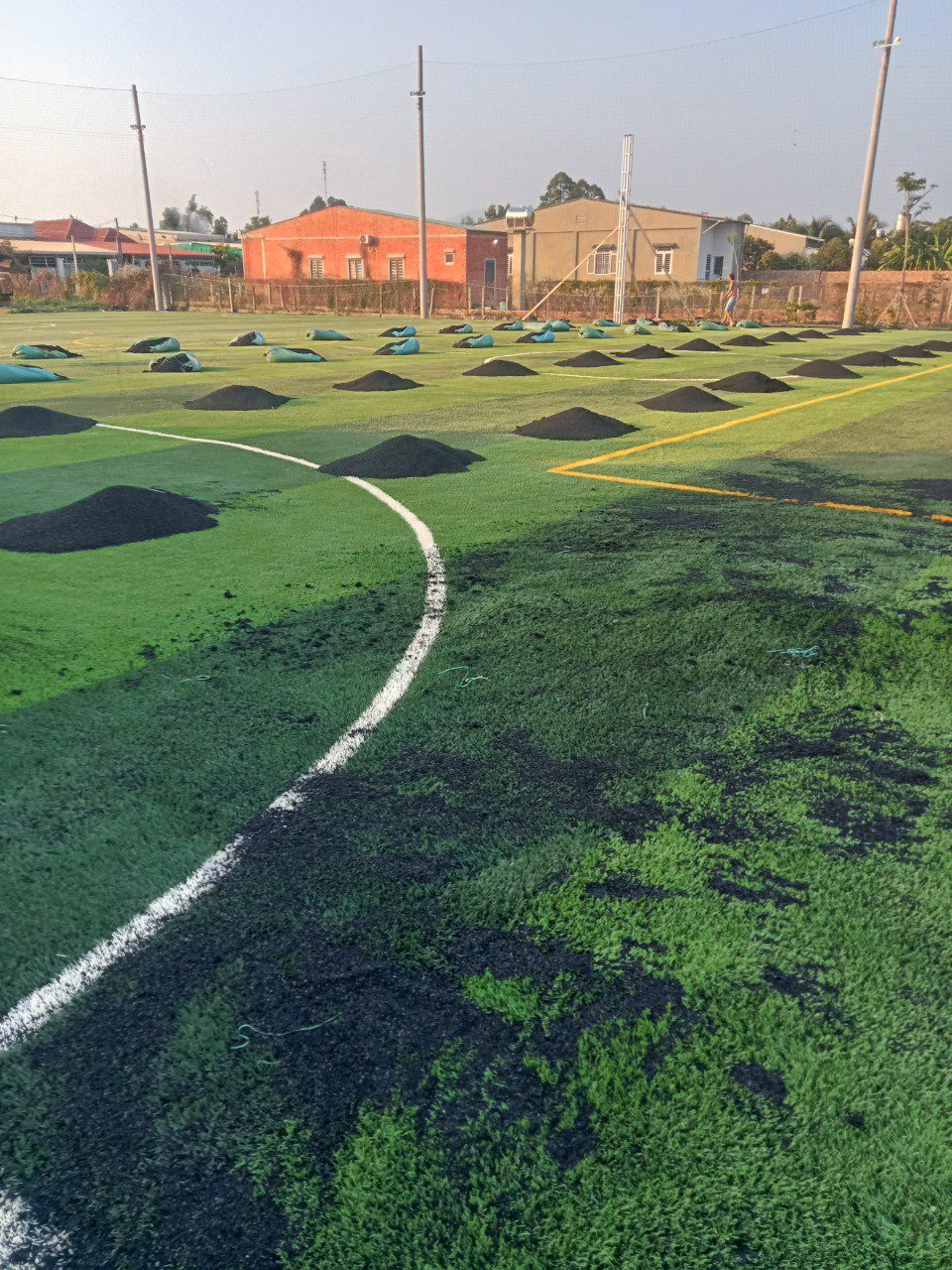 - Dọn dẹp sạch sẻ: cây cối, rác xung quanh vị trí làm sân cỏ nhân tạo.