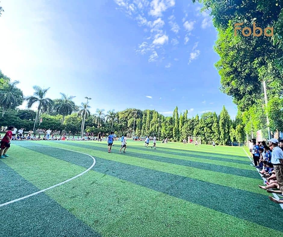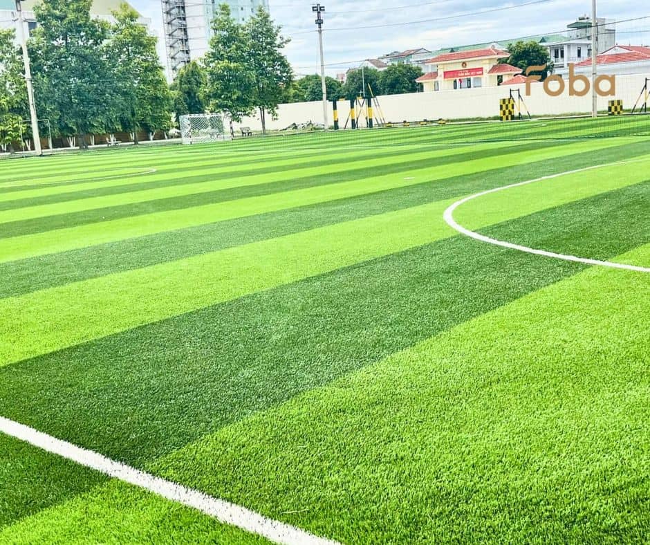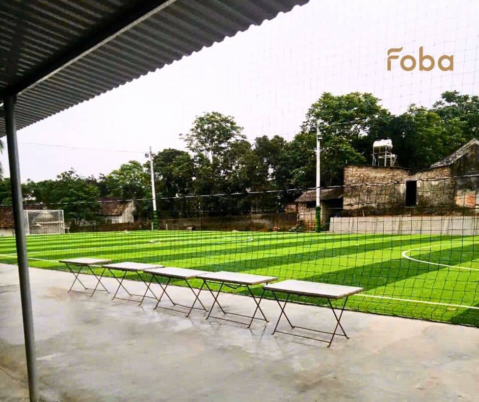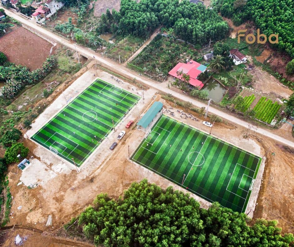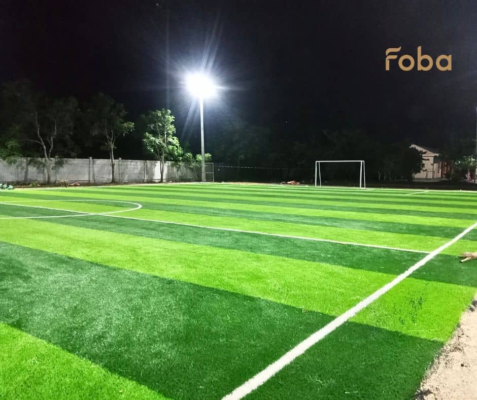 Giá thi công sân cỏ nhân tạo được FOBA báo trọn gói – bao gồm tất cả chi phí từ khảo sát, nền hạ, cỏ nhân tạo, đèn chiếu sáng, lưới chắn, nhân công và vận chuyển: