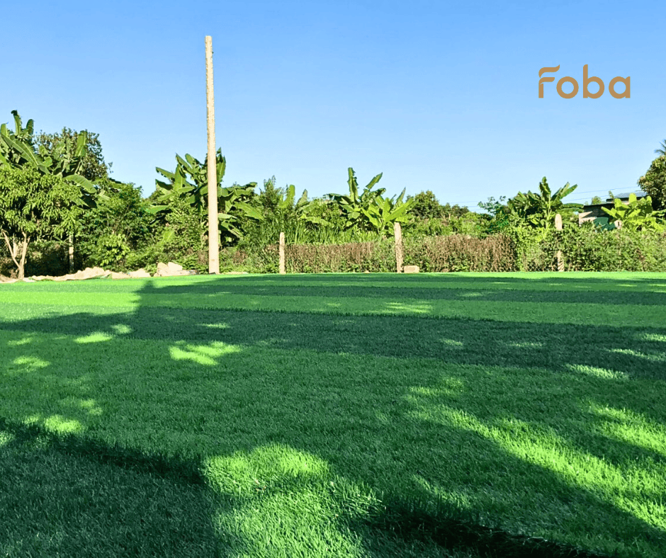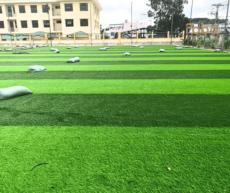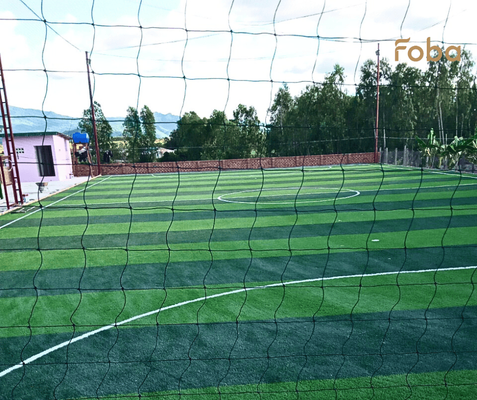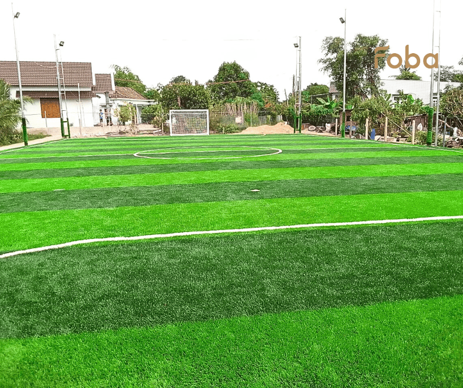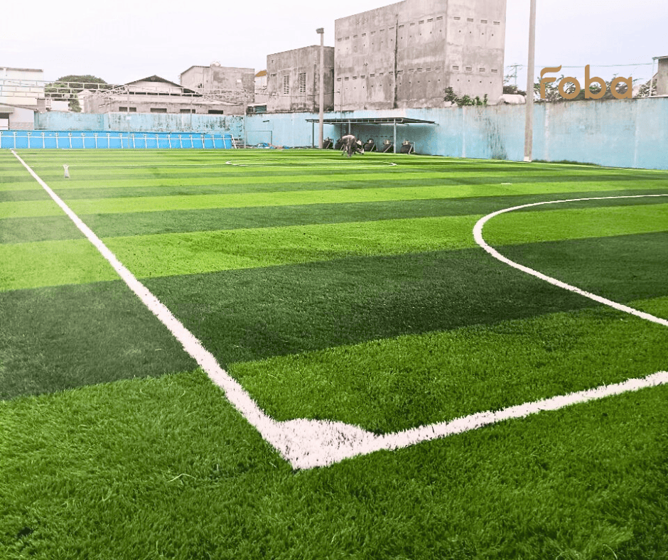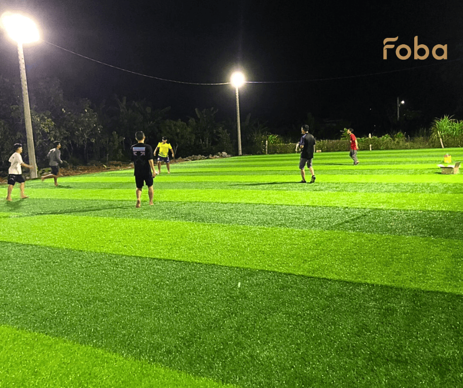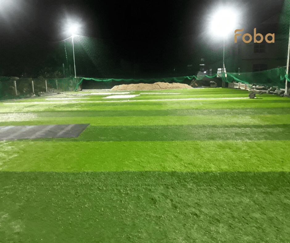 Giá thi công sân cỏ nhân tạo được FOBA báo trọn gói – bao gồm tất cả chi phí từ khảo sát, nền hạ, cỏ nhân tạo, đèn chiếu sáng, lưới chắn, nhân công và vận chuyển: